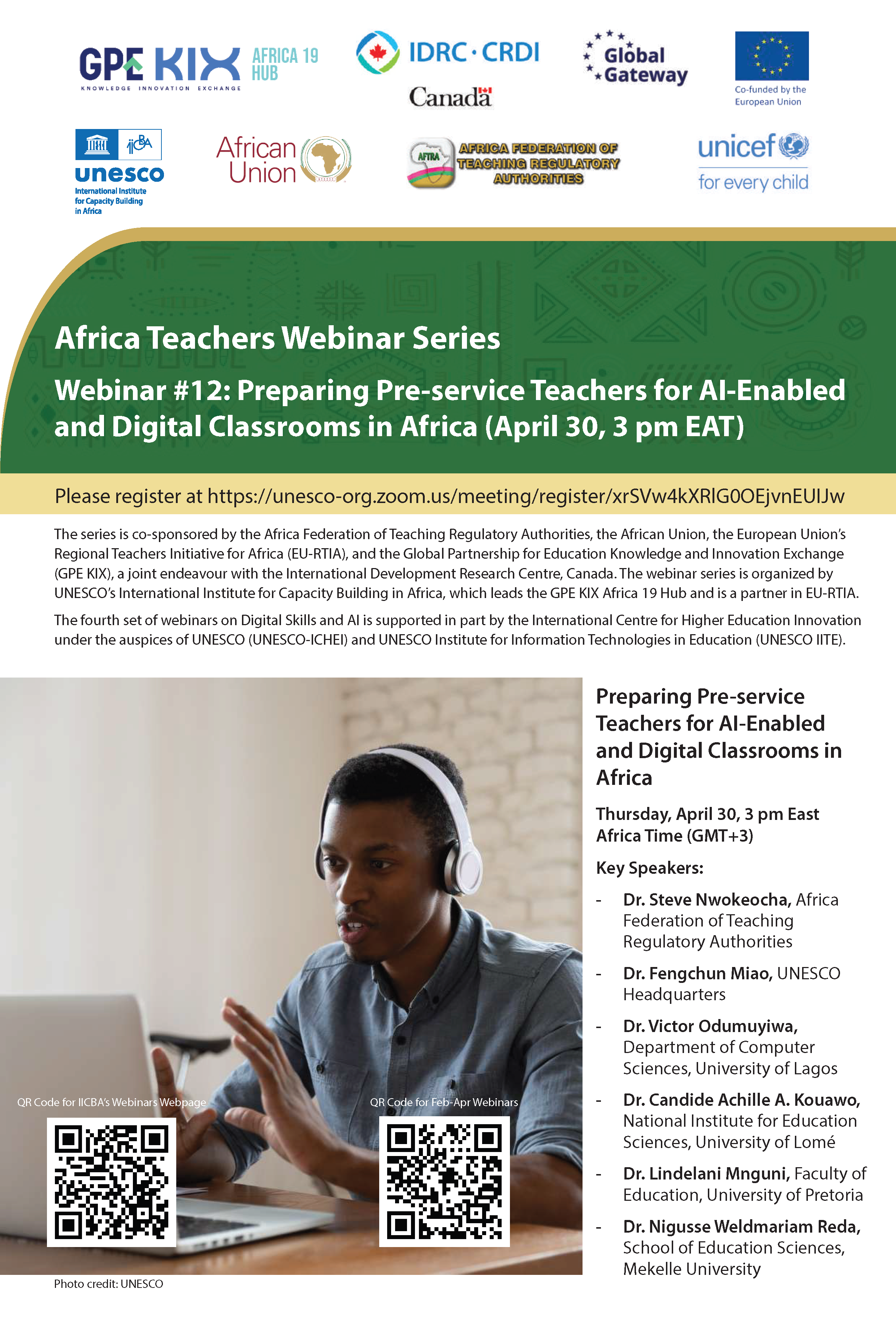 Webinar #12: Preparing Pre-service Teachers for AI-Enabled and Digital Classrooms in Africa will take place on: